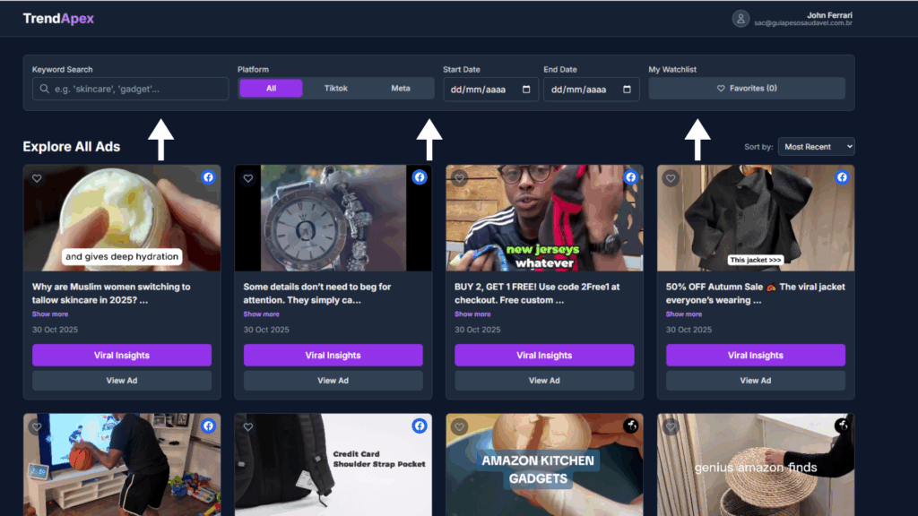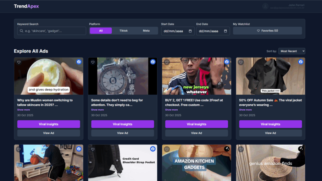 Currently, we provide in-depth tracking for the highest-impact platforms: TikTok and Facebook Ads. We are continuously working to expand our coverage.
